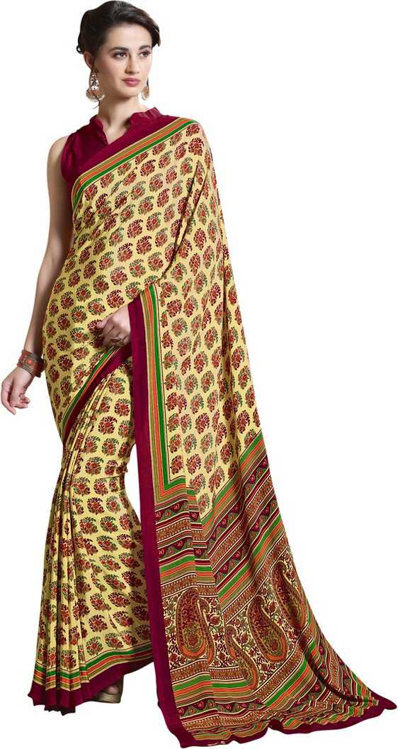 Printed, Floral Print Fashion Poly Crepe Saree (Yellow, Maroon)#JustHere