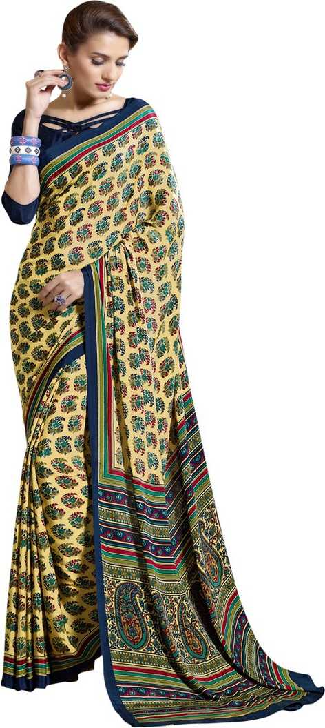 Printed, Floral Print Fashion Poly Crepe Saree (Yellow, Blue)#JustHere
