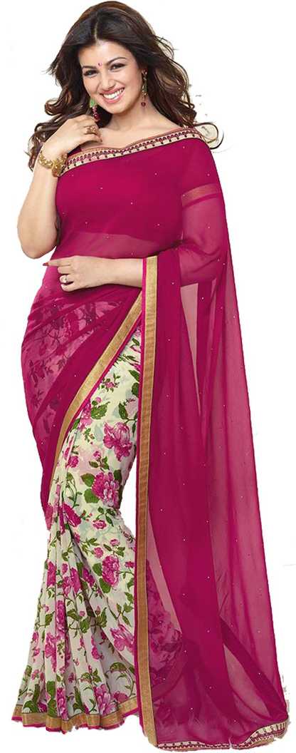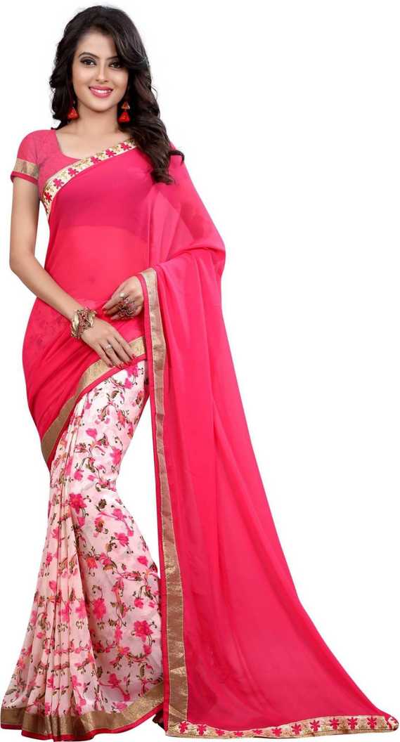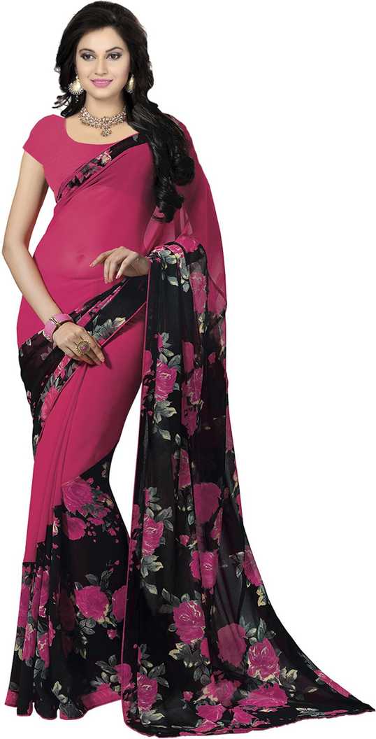 Floral Print Fashion Poly Georgette Saree (Pink)