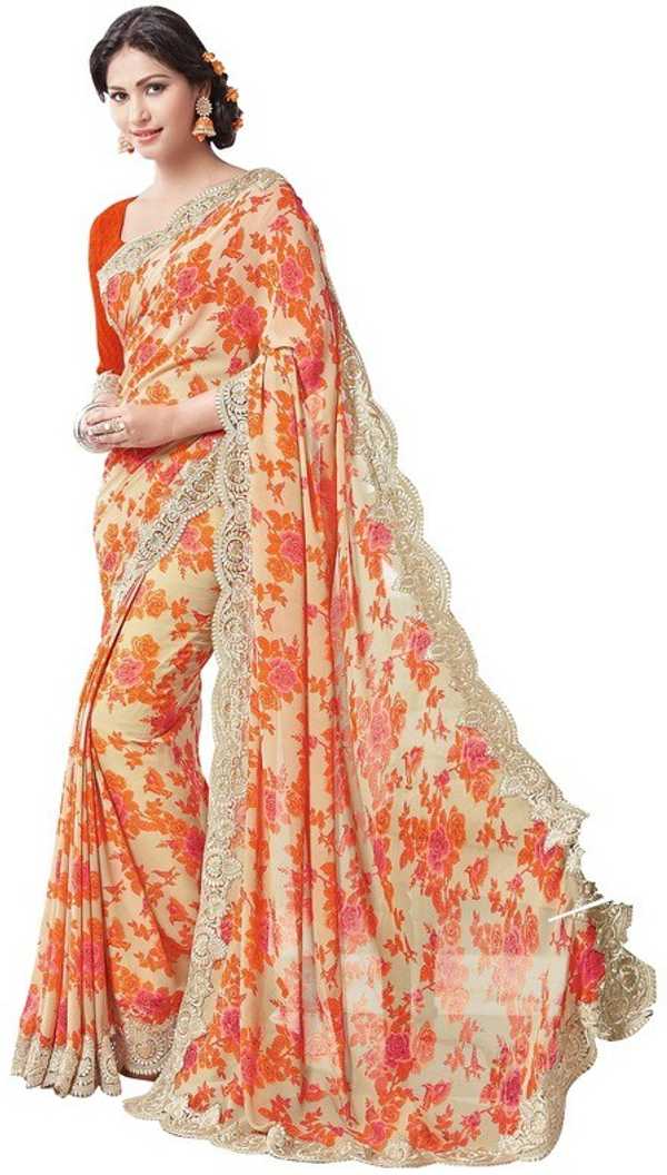 Floral Print Fashion Poly Georgette Saree (Orange)