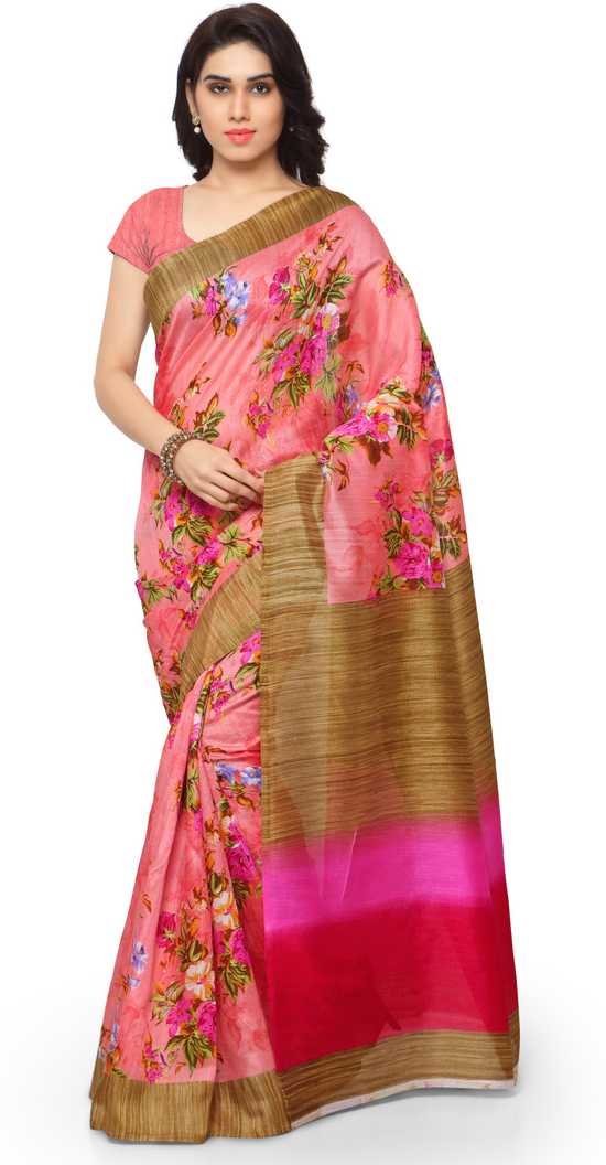 Floral Print Mysore Art Silk Saree (Pink)
