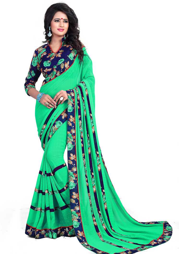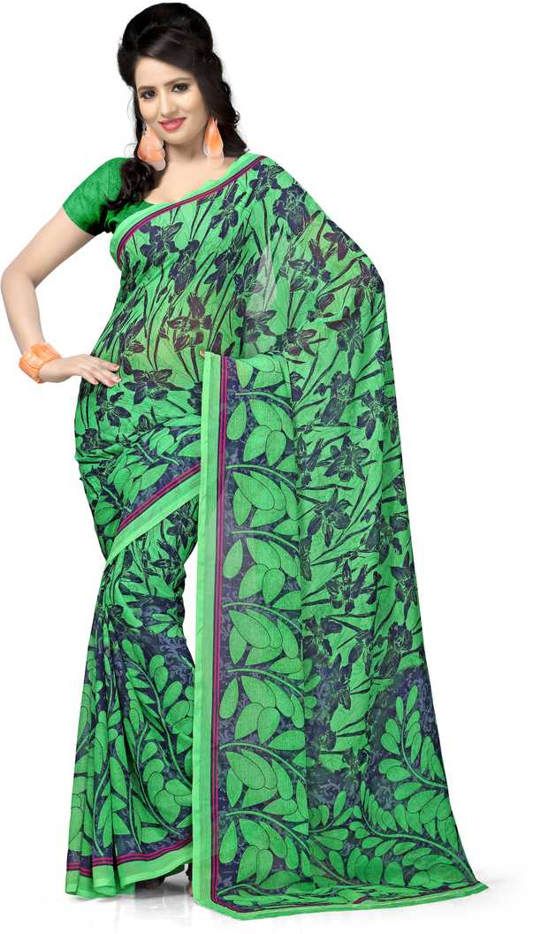 Floral Print Daily Wear Poly Georgette Saree (Green)