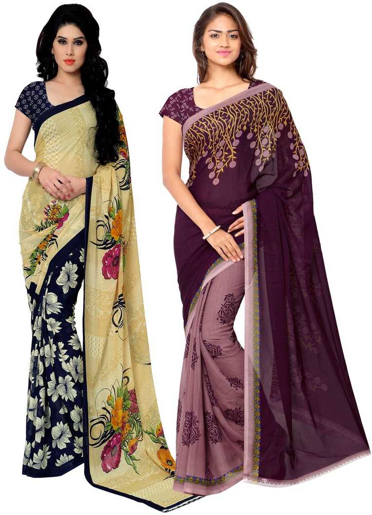 Floral Print Daily Wear Poly Georgette Saree (Pack of 2, Beige, Purple)
