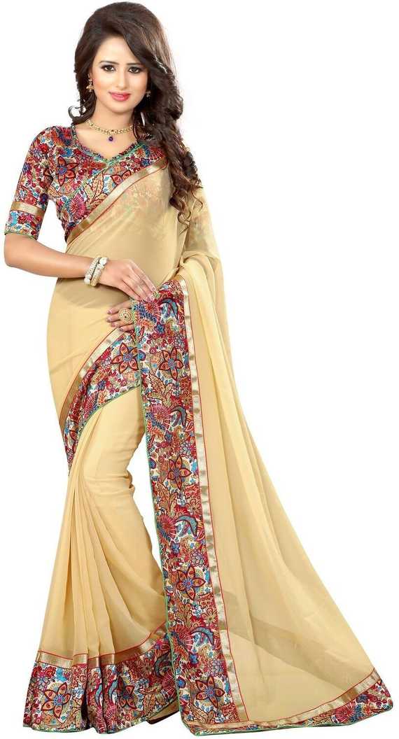 Floral Print Fashion Poly Georgette Saree (Beige)
