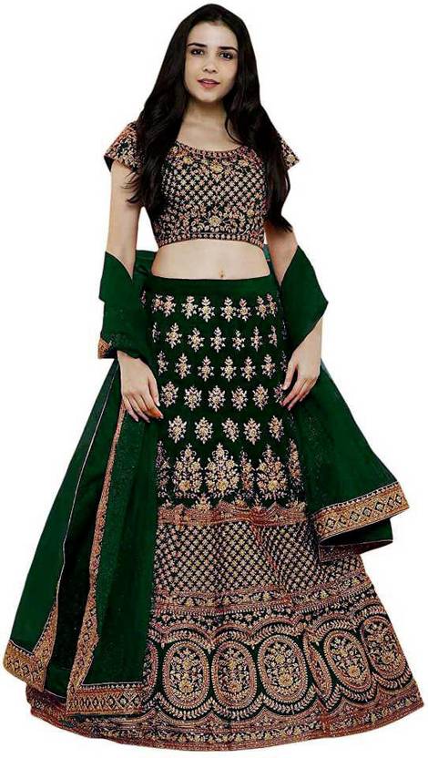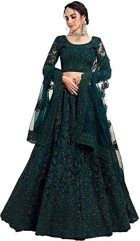 Shree Impex Embroidered Semi Stitched Lehenga Choli (Dark Green)