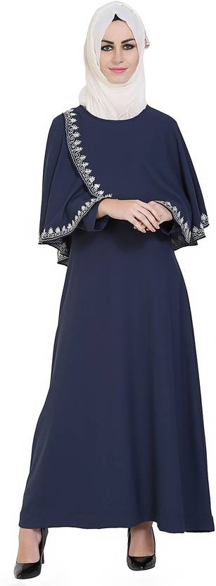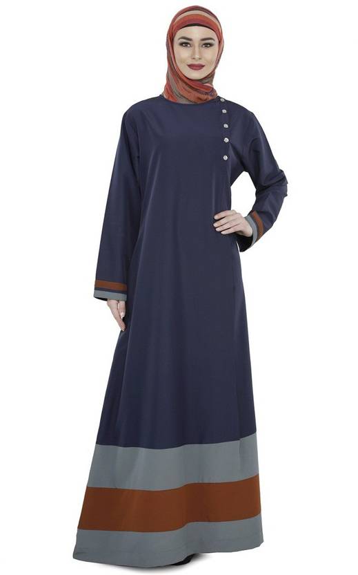 Momin Libas AK20017 Polyester Solid Burqa (Blue)