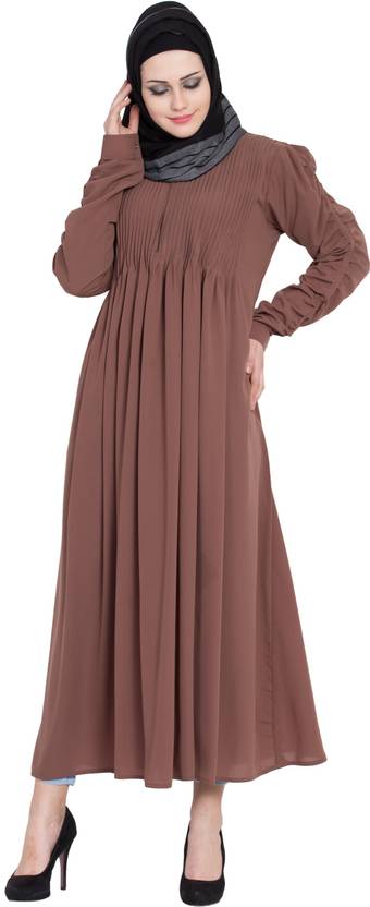 TUCUTE BROWN124 LYCRA Solid Abaya With Hijab (Brown)