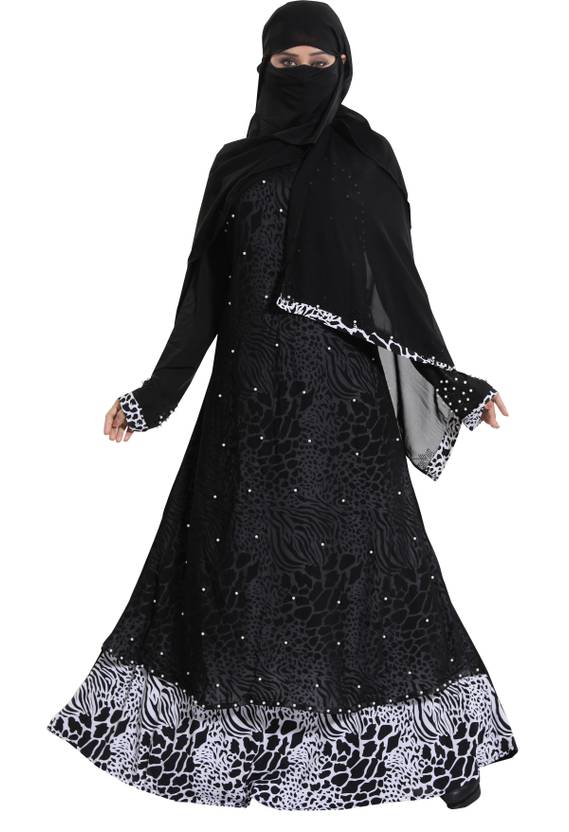 TUCUTE BLACKWHITE26 LYCRA Printed Abaya With Hijab (Black)
