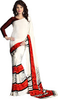Saara Solid, Printed, Digital Prints Fashion Crepe Saree(White, Red)