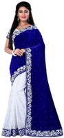 Aksh Fashion Embroidered Bollywood Velvet, Net Saree(Blue)