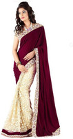 Aksh Fashion Embroidered Bollywood Velvet, Brasso Saree(Maroon)