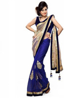 Aksh Fashion Embroidered Bollywood Net Saree(Blue)