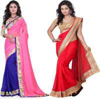 Aai Shree Khodiyar Art Solid Bollywood Chiffon Saree(Pack of 2, Multicolor)