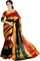 Kjs Striped Bollywood Cotton Saree(Multicolor)