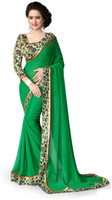 Indianbeauty Solid, Printed Bollywood Chiffon Saree(Green)
