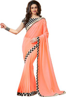 Saumya Designer Solid Bollywood Georgette Saree(Red, Gold)