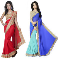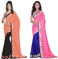 Aai Shree Khodiyar Art Solid Bollywood Georgette Saree(Pack of 2, Multicolo...