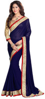 Saumya Designer Solid Bollywood Georgette Saree(Blue, Gold)