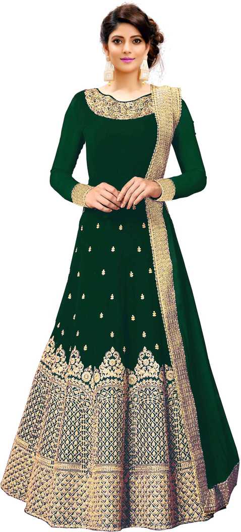 Embroidered Fentam Silk Anarkali Gown (Dark Green)