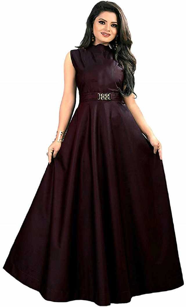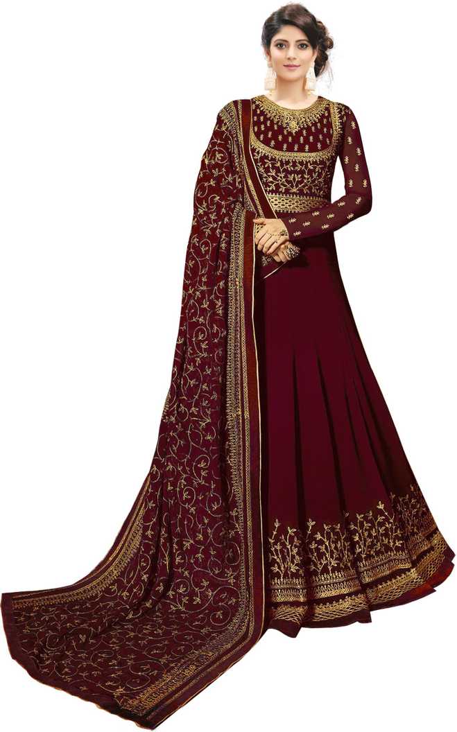 Embroidered Poly Silk Anarkali Gown (Maroon)