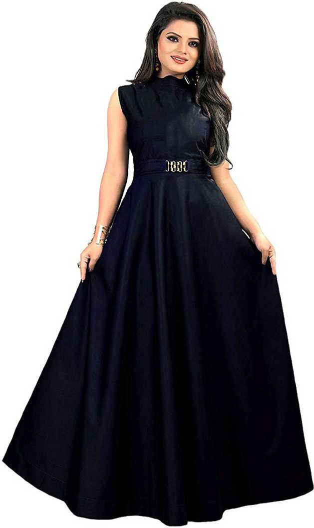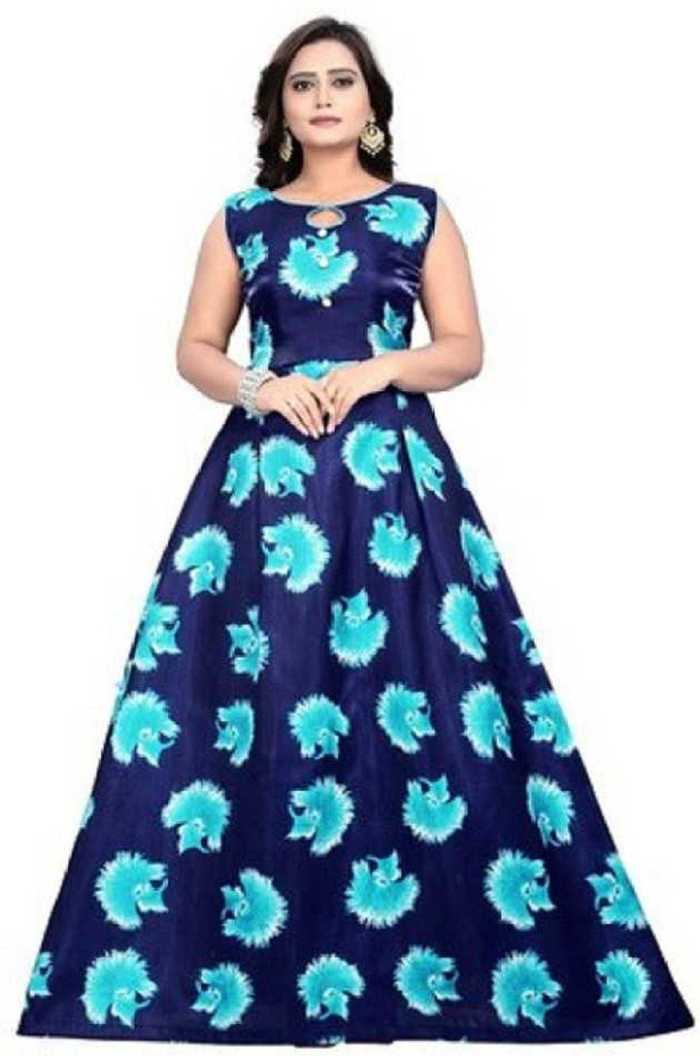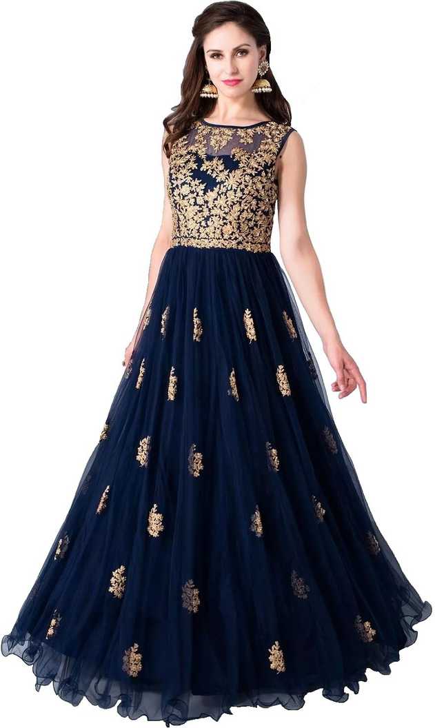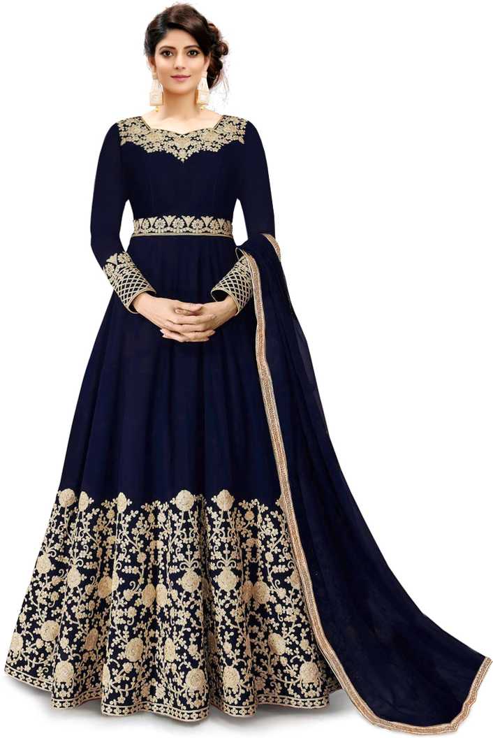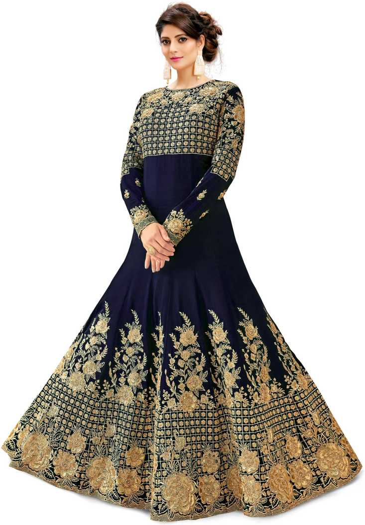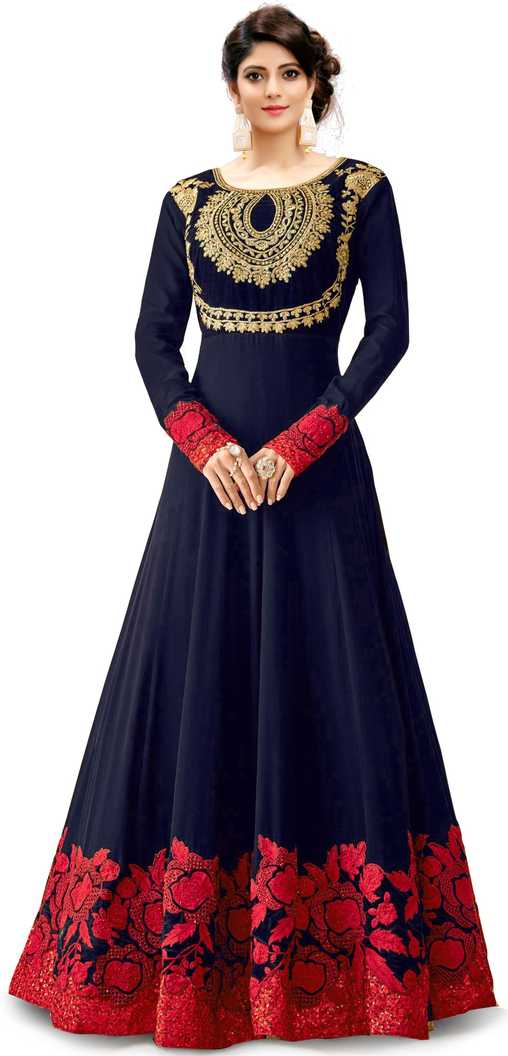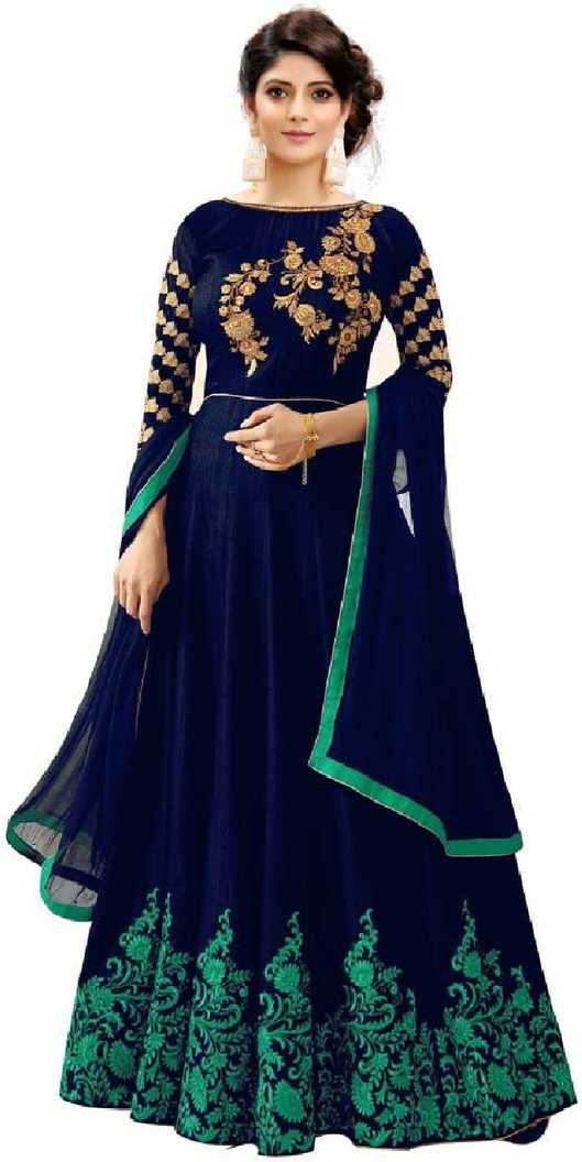 Embroidered Poly Silk Anarkali Gown (Dark Blue)