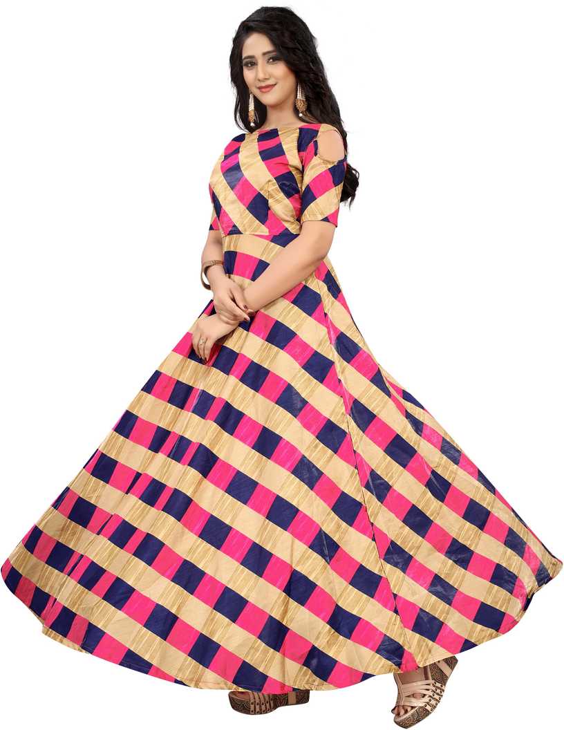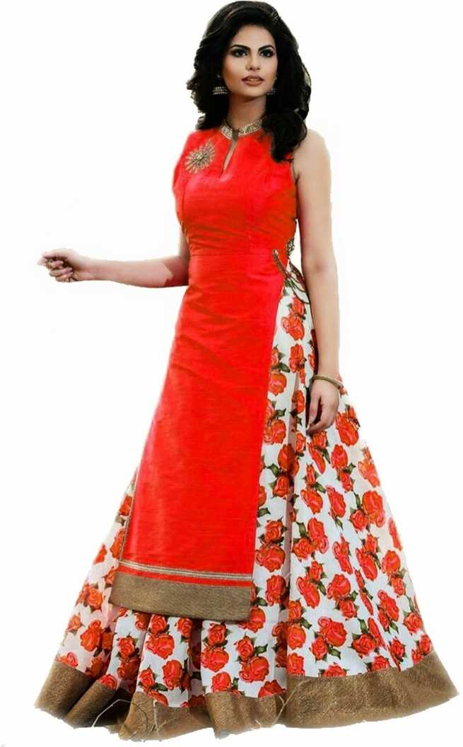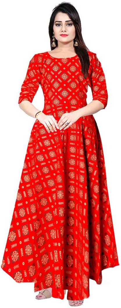 Printed Cotton Rayon Blend Anarkali Gown (Red)