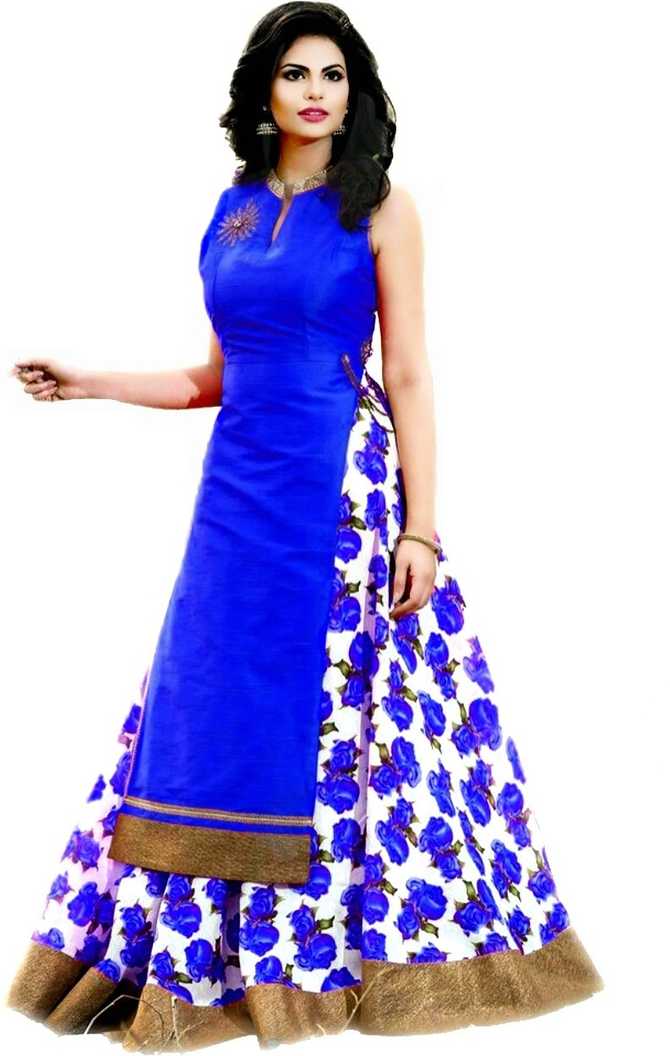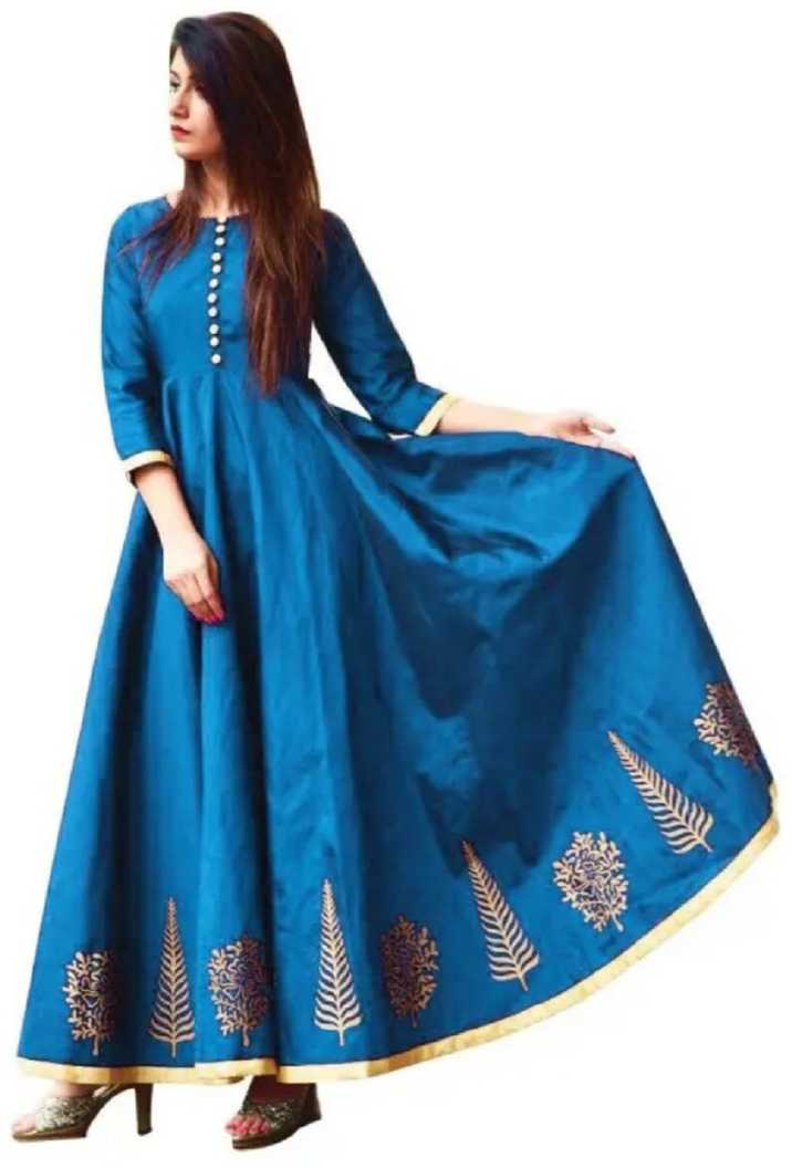Embroidered Silk Blend Anarkali Gown (Blue)