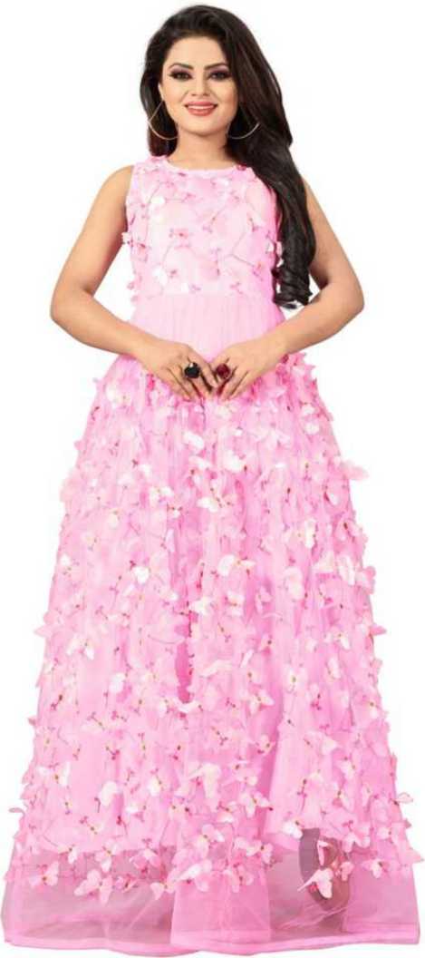 Net Anarkali Gown (Pink)