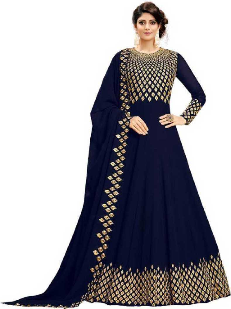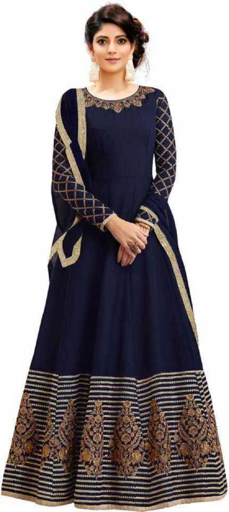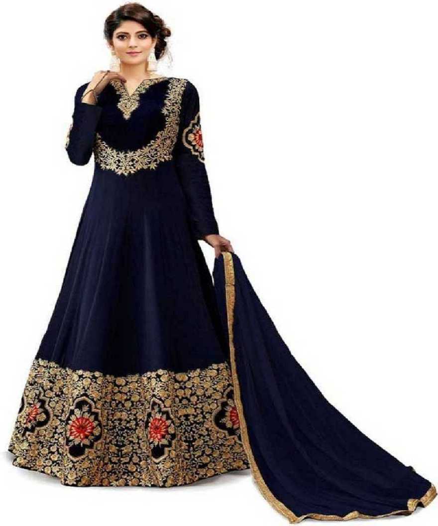 Embroidered Poly Georgette Anarkali Gown (Blue)