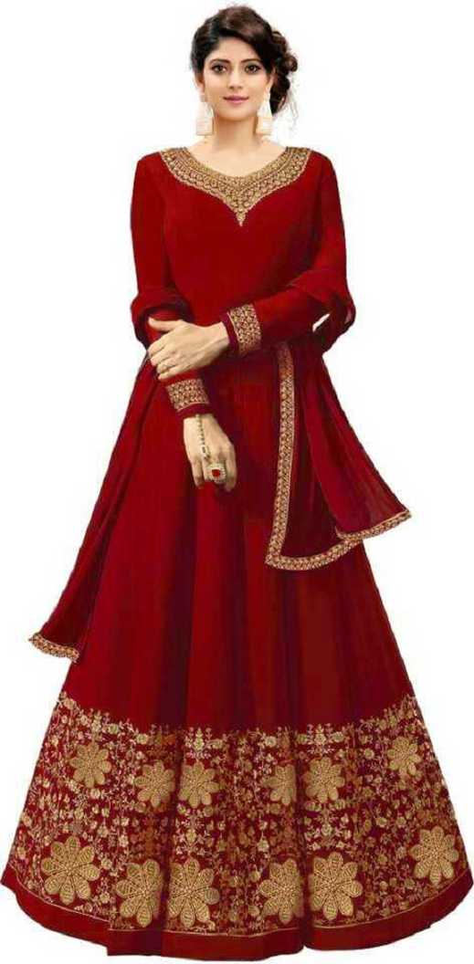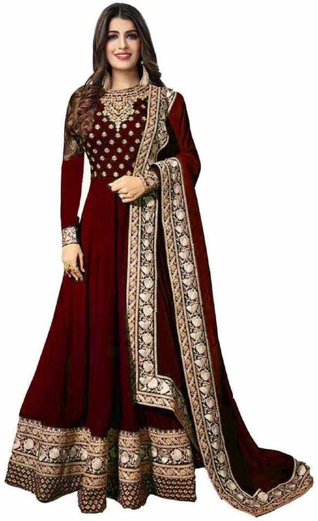 Embroidered Georgette Anarkali Gown (Maroon)
