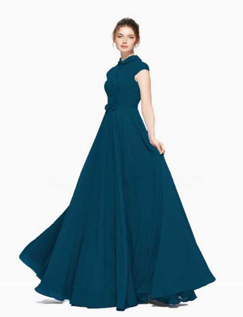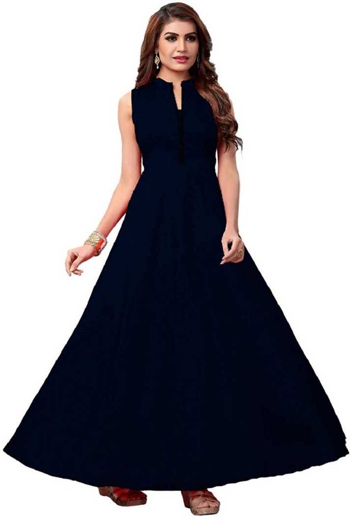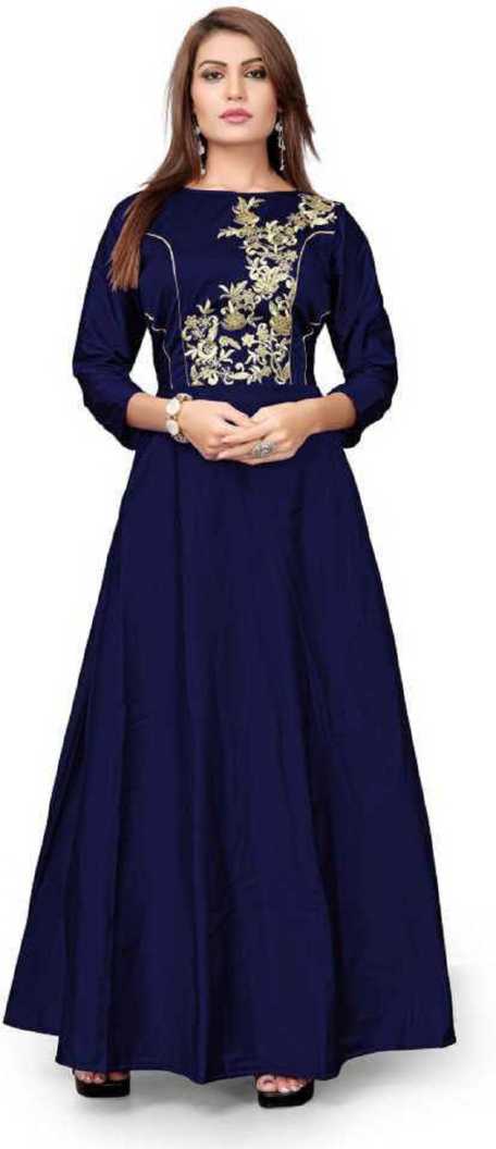 Solid Poly Silk Flared/A-line Gown (Blue)