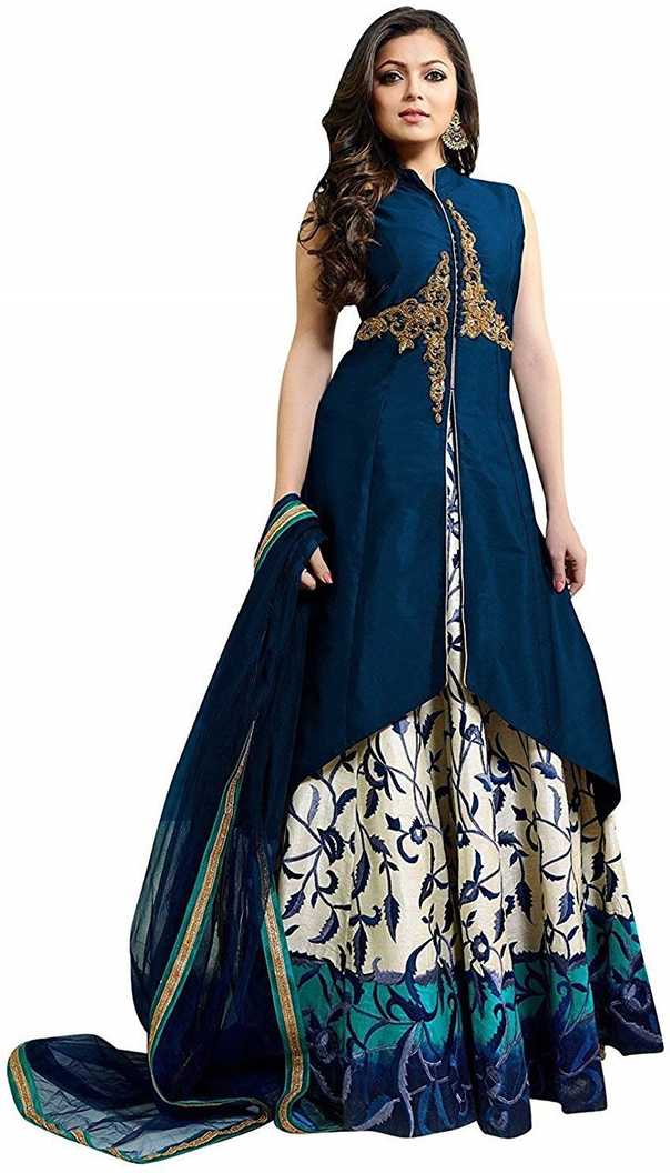 Silk Blend Anarkali Gown (Blue)