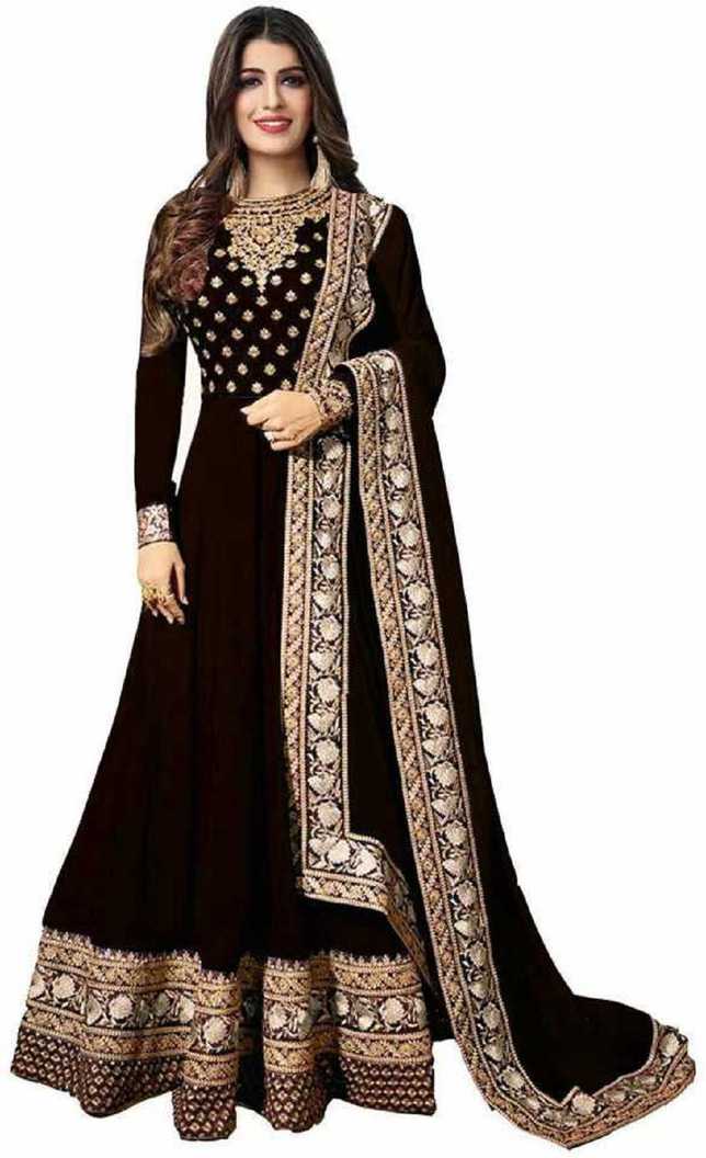 Embroidered Georgette Anarkali Gown (Brown)