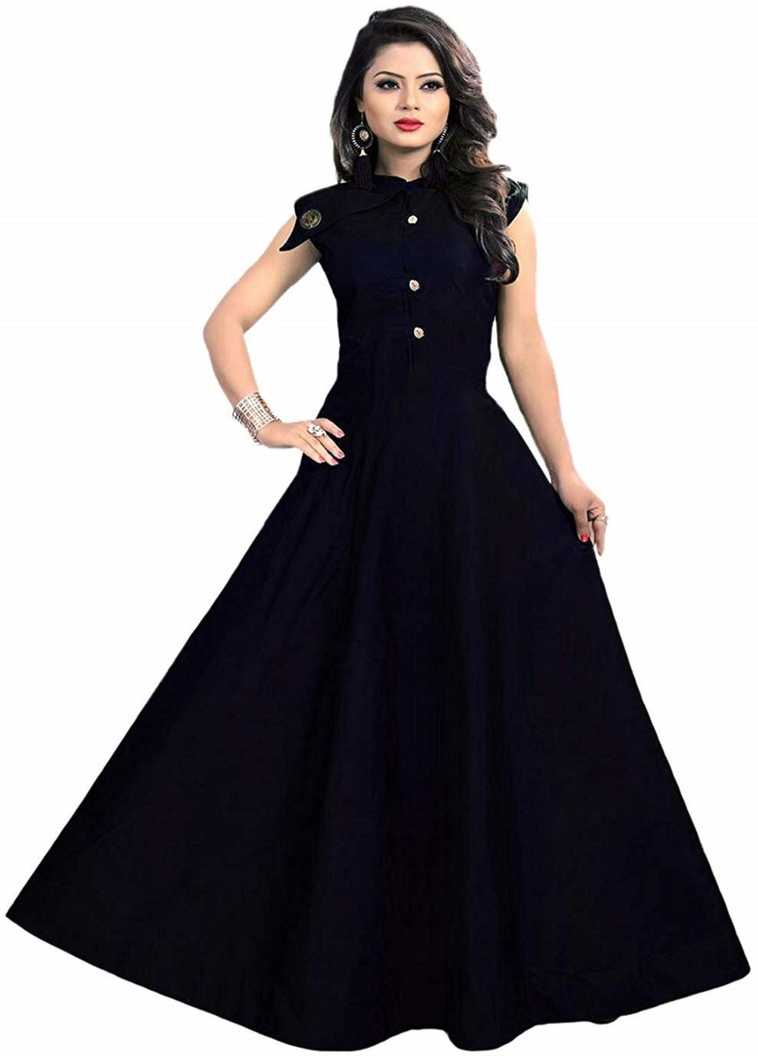 Self Design, Solid Pure Satin Straight Gown (Black)