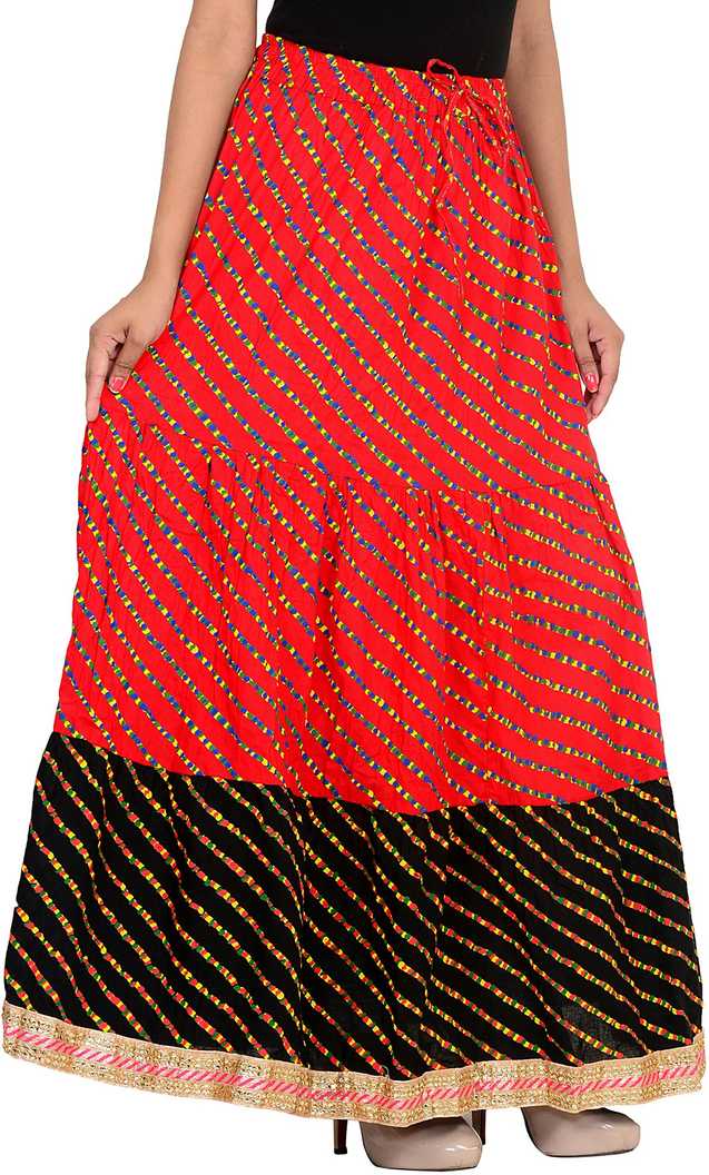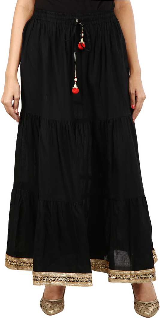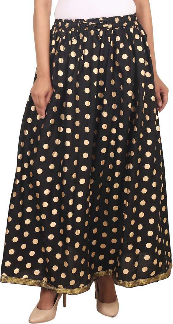 Women Floral Print, Printed, Solid Flared Black, Gold Skirt
