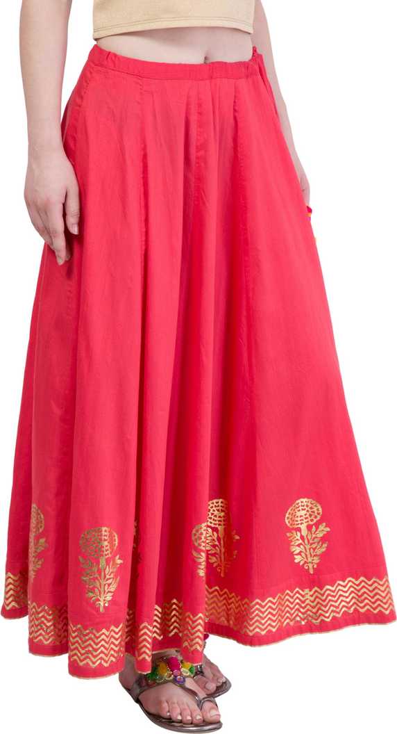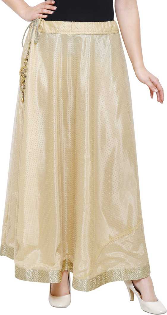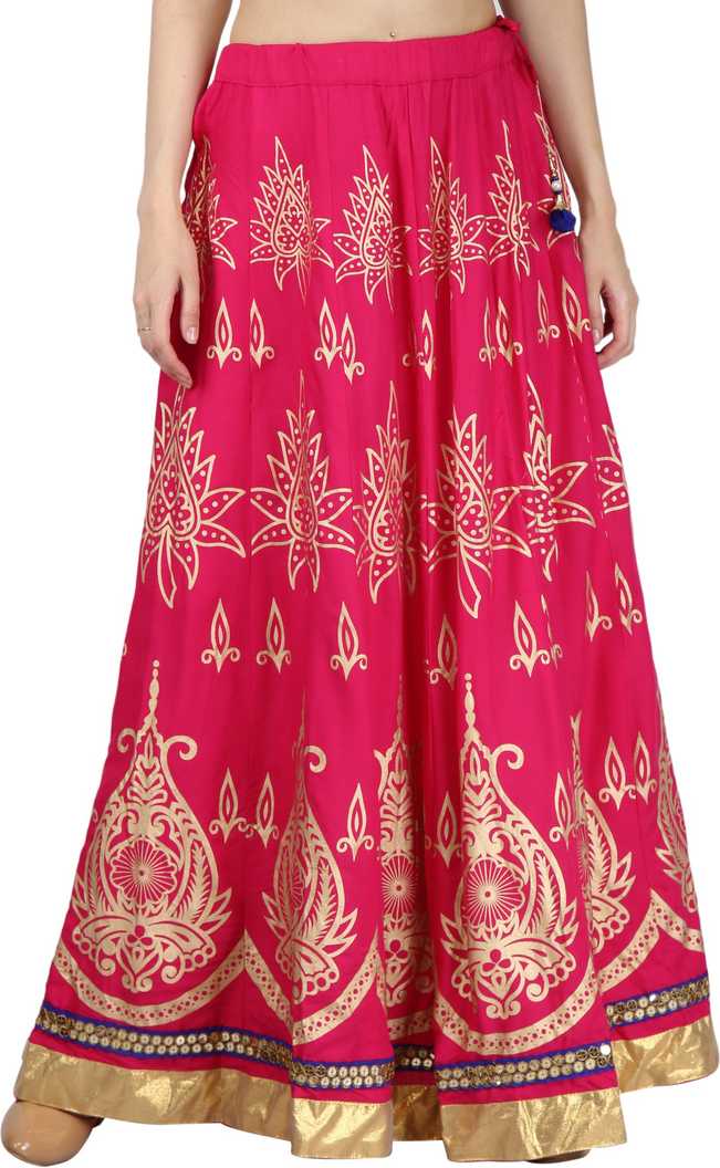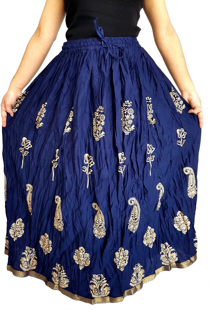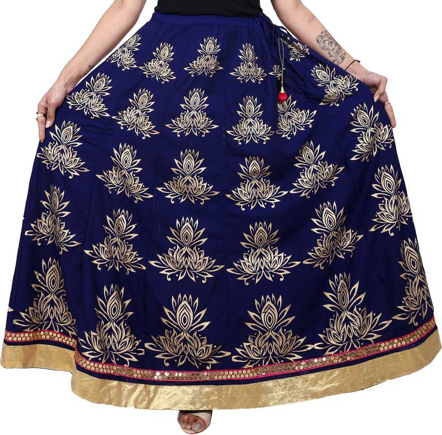 Women Floral Print, Printed, Solid Flared Dark Blue, Gold Skirt