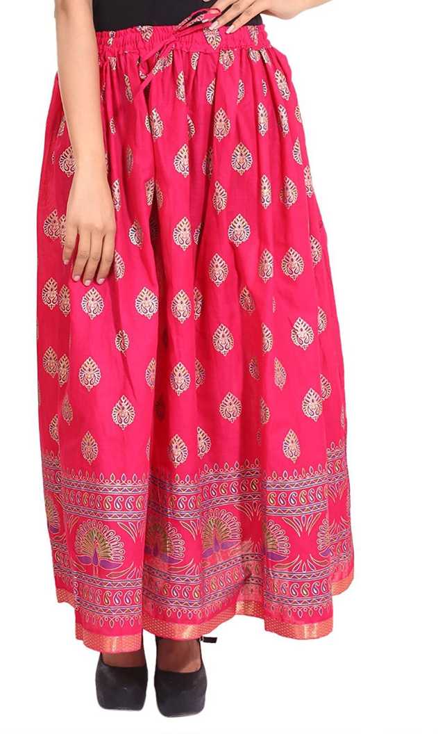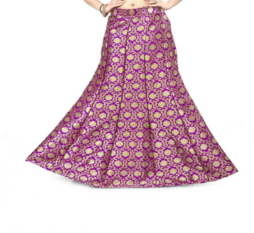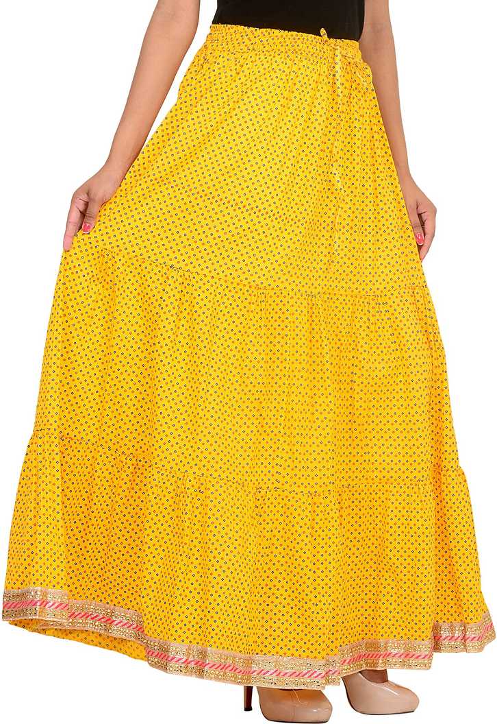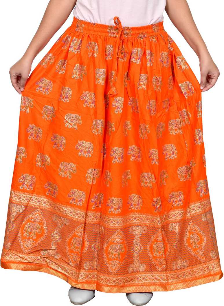 Women Floral Print, Printed, Solid Flared Dark Blue, Gold Skirt