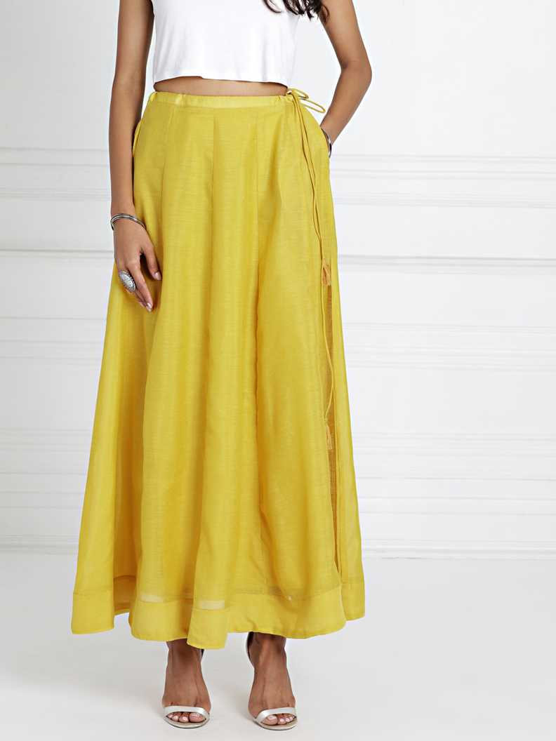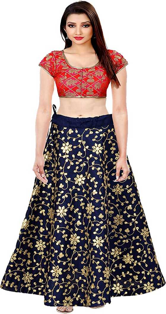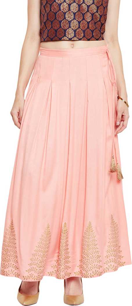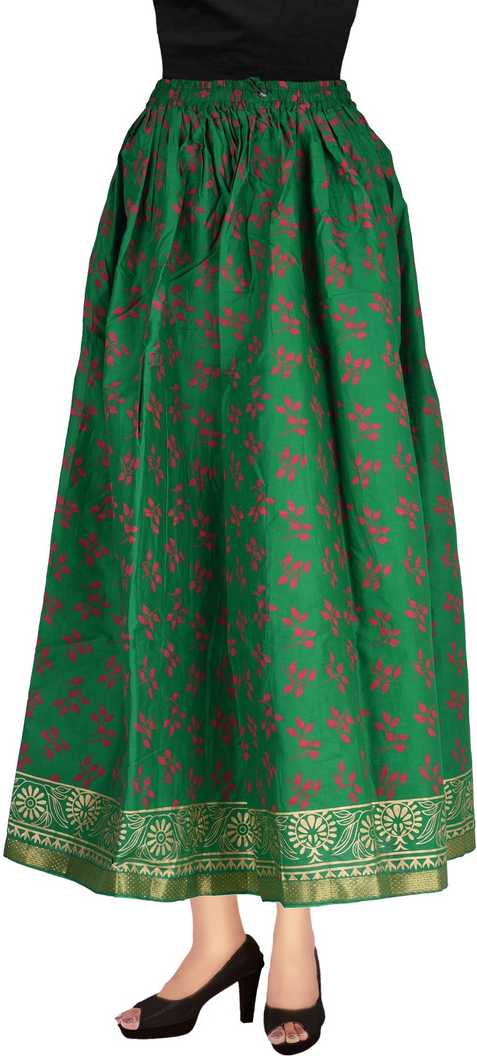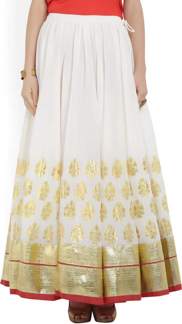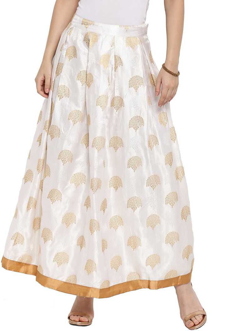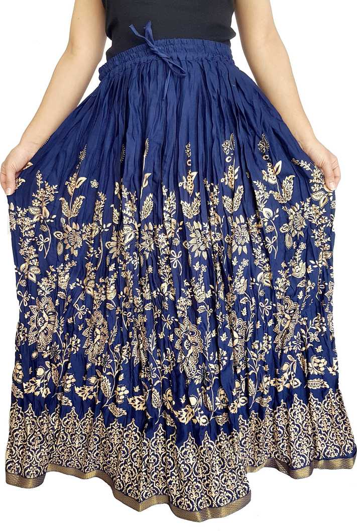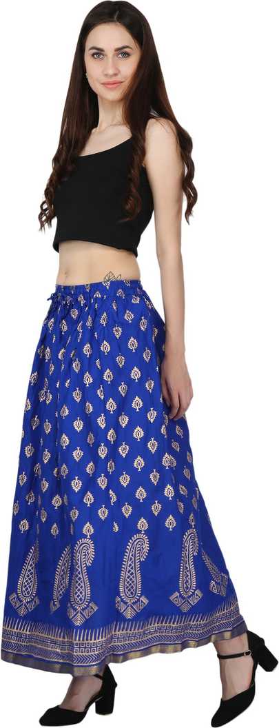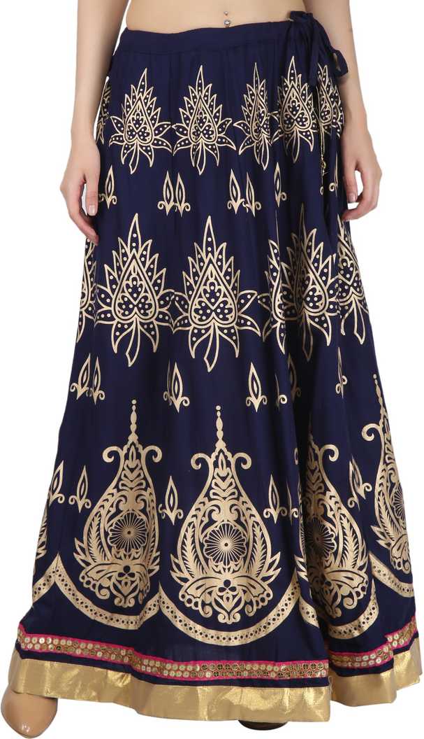 Women Floral Print, Printed, Solid Flared Dark Blue, Gold Skirt
