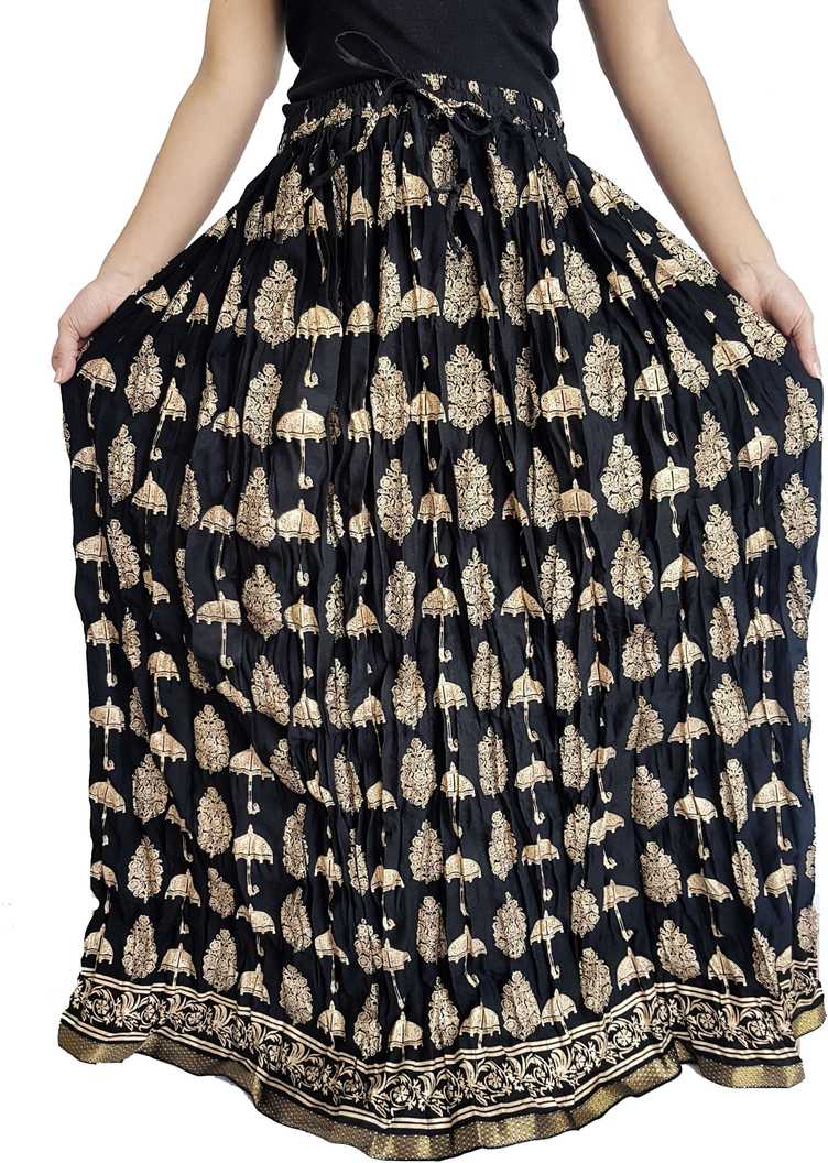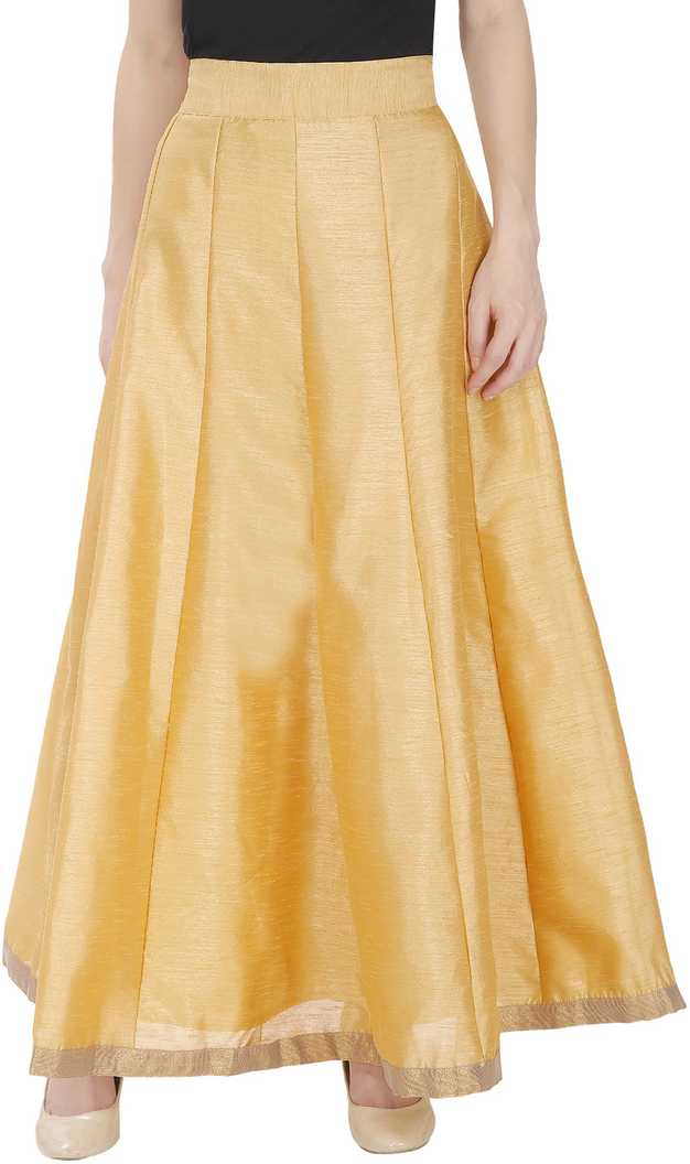 Women Floral Print, Printed, Solid Flared Black, Gold Skirt