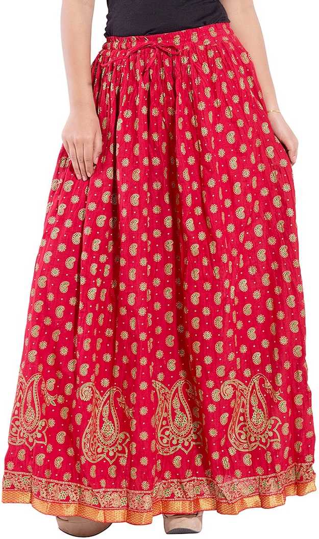 Women Floral Print, Embellished, Printed Flared Red Skirt