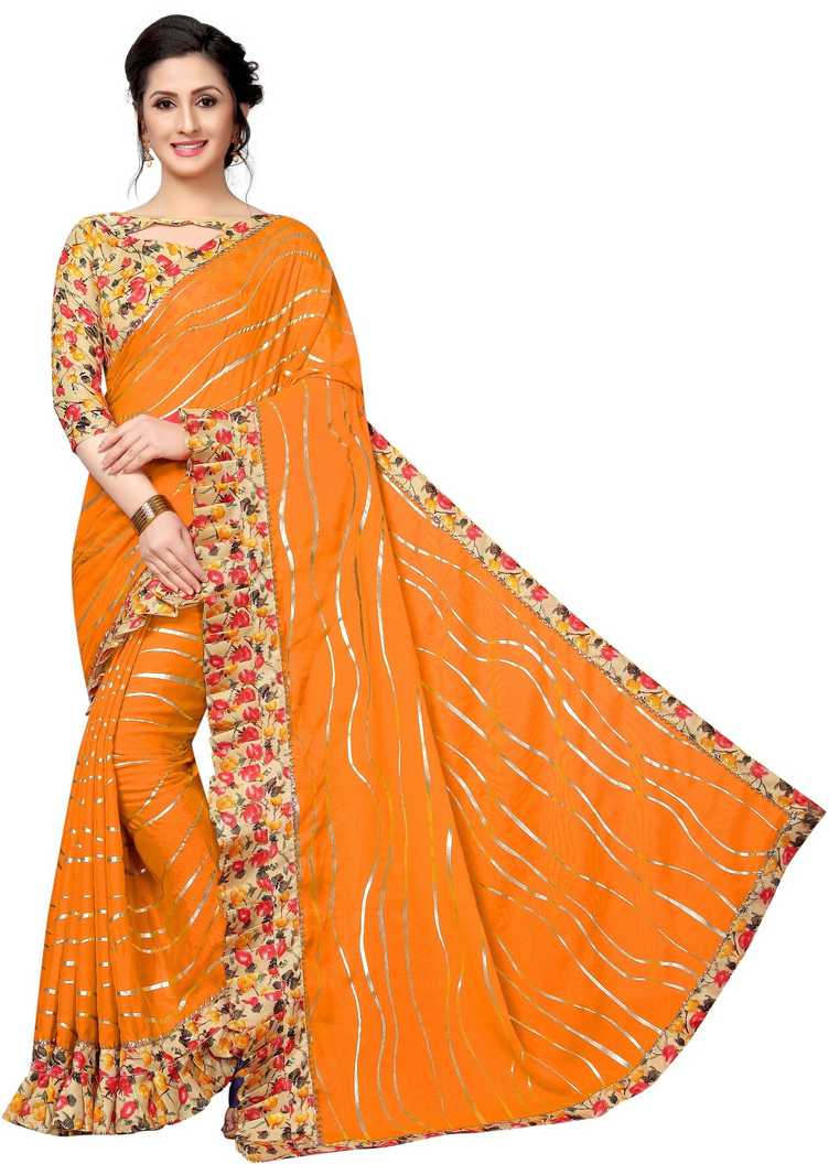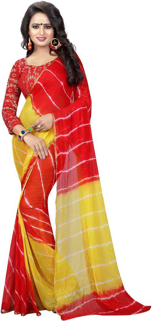 Printed Leheria Chiffon Saree (Yellow)
