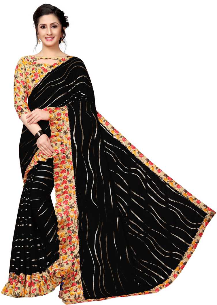 Printed Fashion Pure Chiffon Saree (Black)