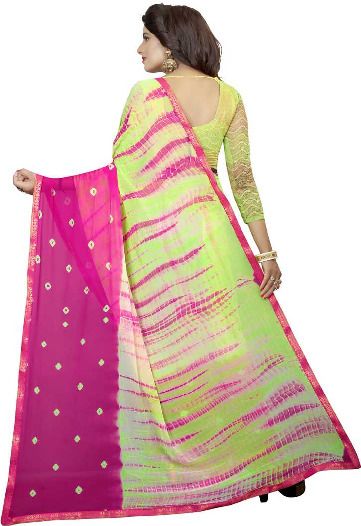Printed Leheria Chiffon Saree (Pink)