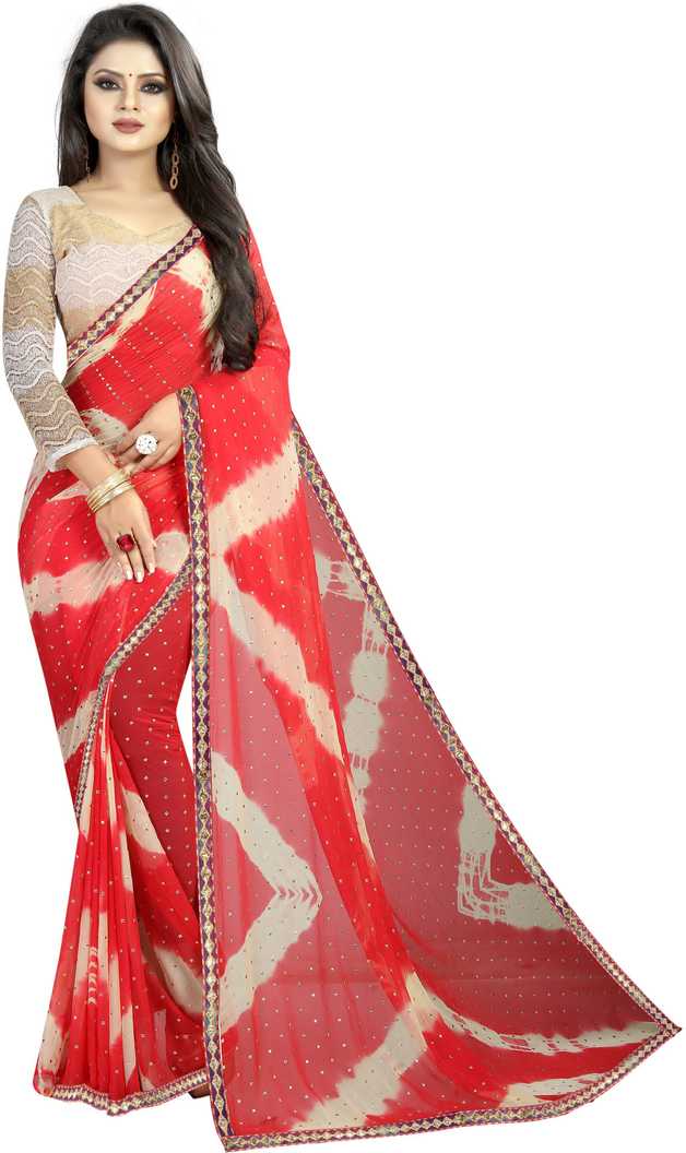 Printed Fashion Pure Chiffon Saree (Red)