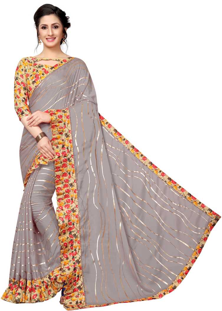 Printed Fashion Polycotton Saree (Grey)
