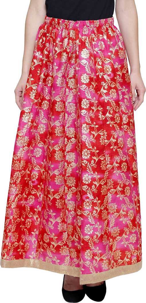 Women Printed Regular Red, Pink Skirt