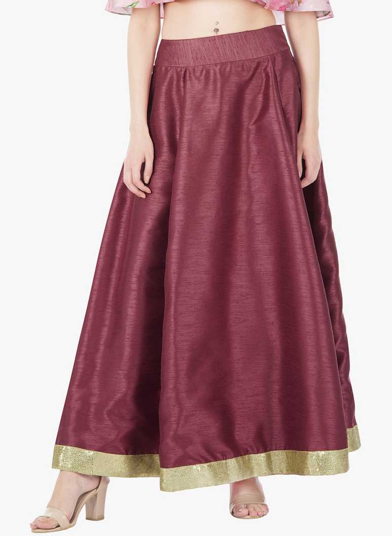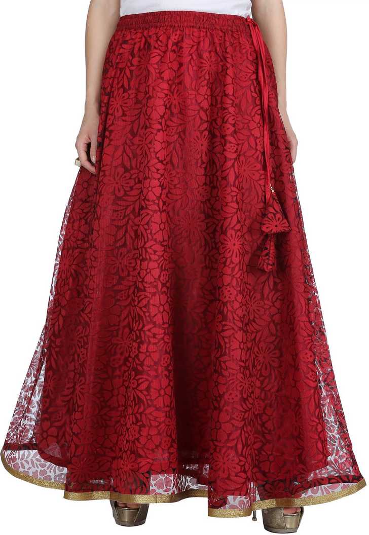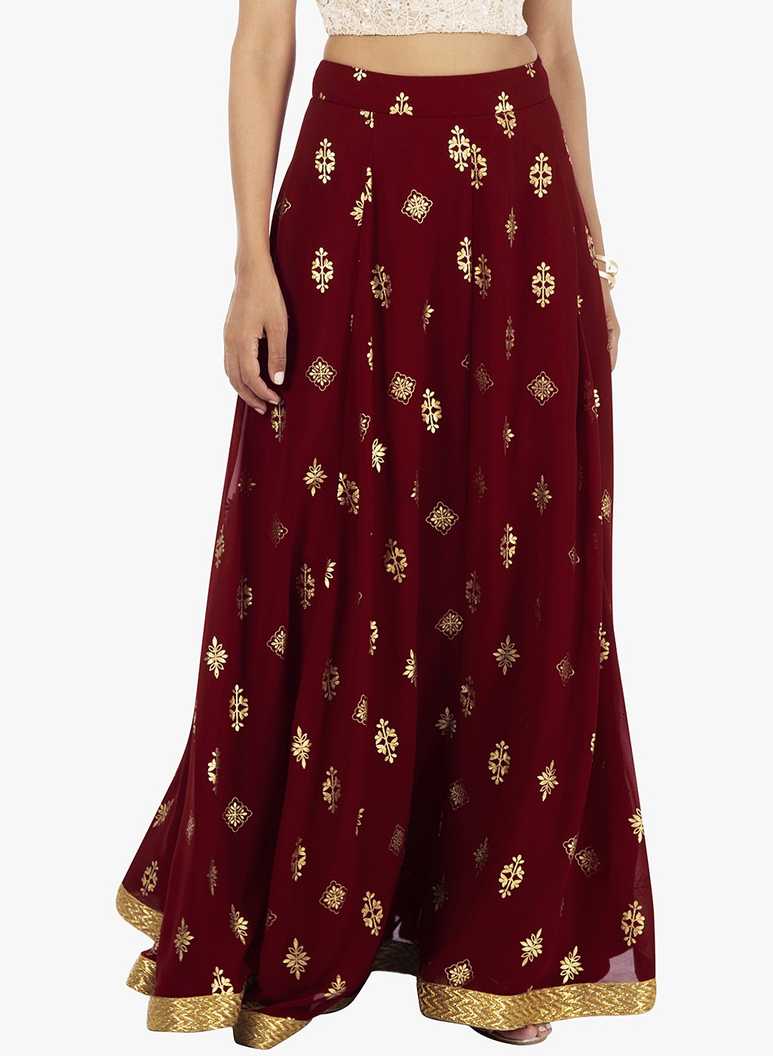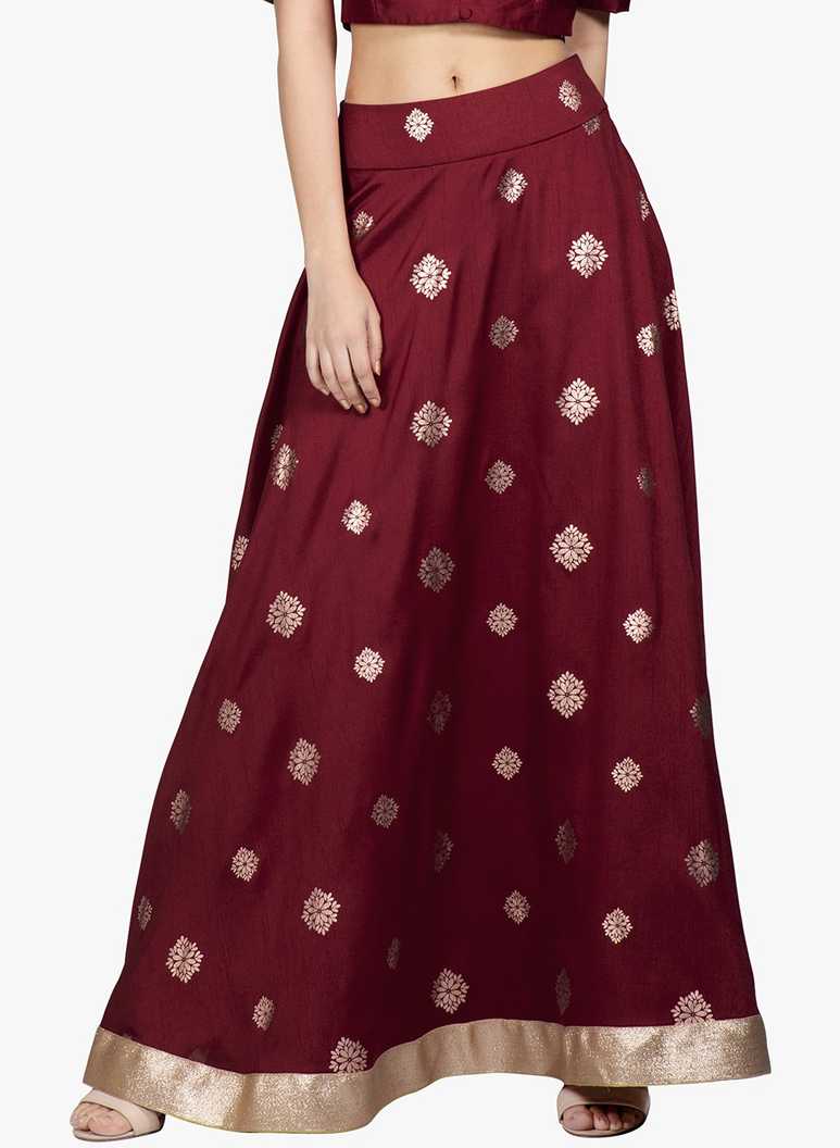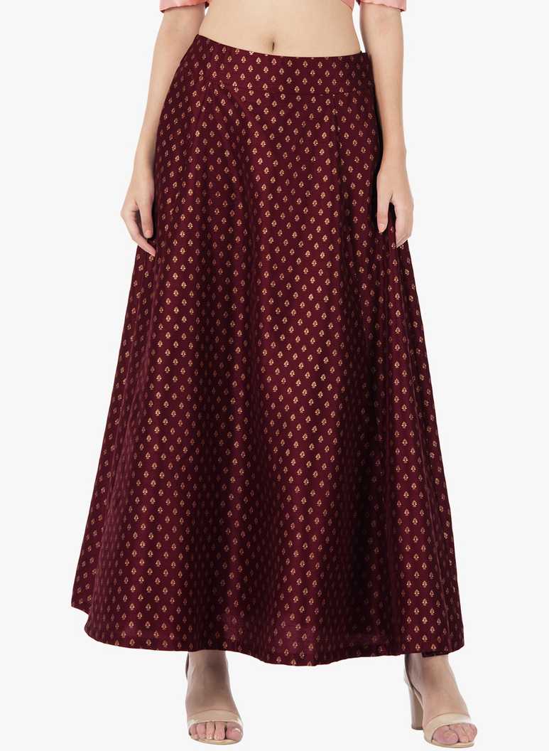Women Printed Flared Maroon Skirt
