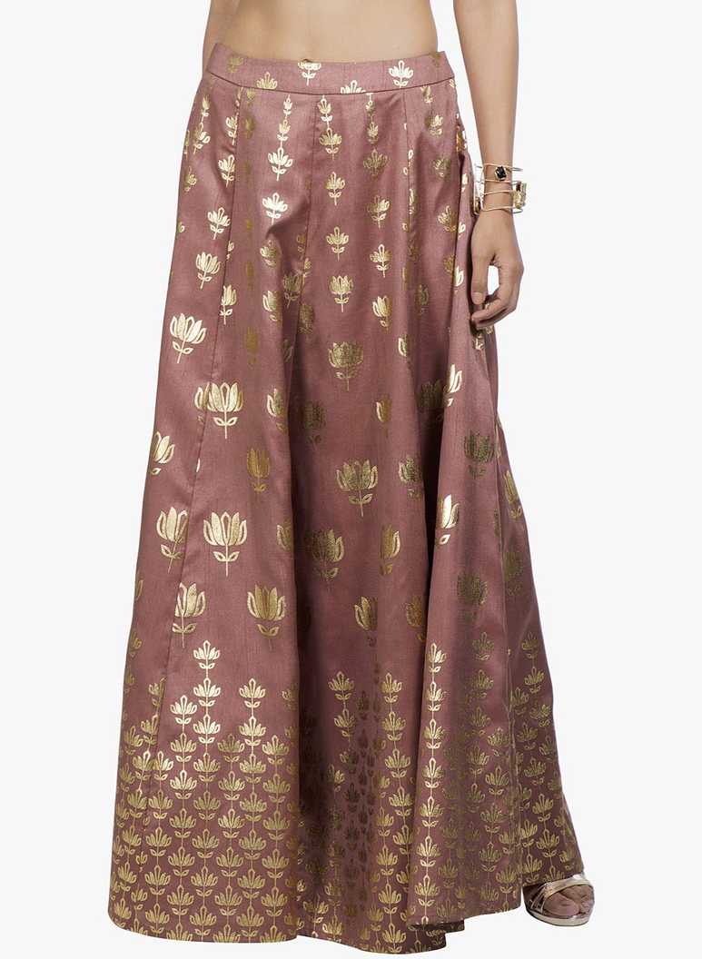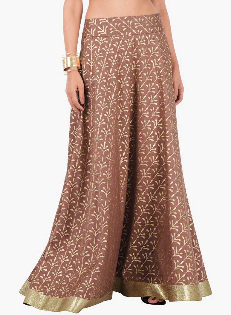 Women Printed Flared Brown Skirt