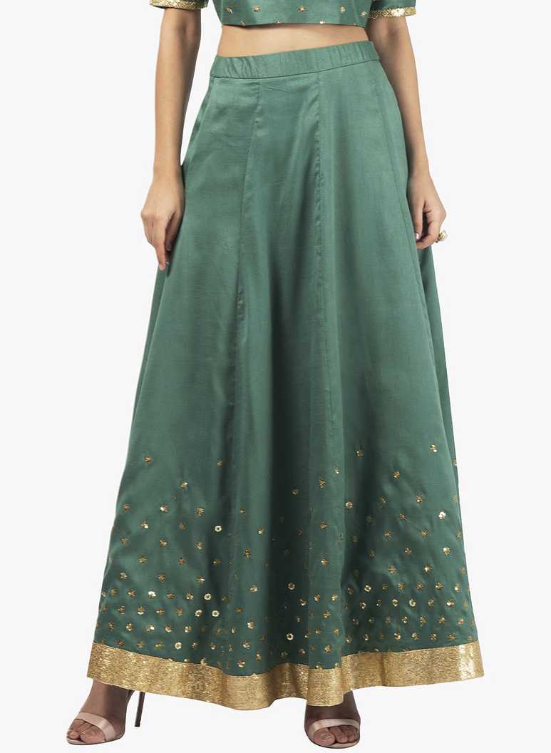 Women Embellished Flared Green Skirt