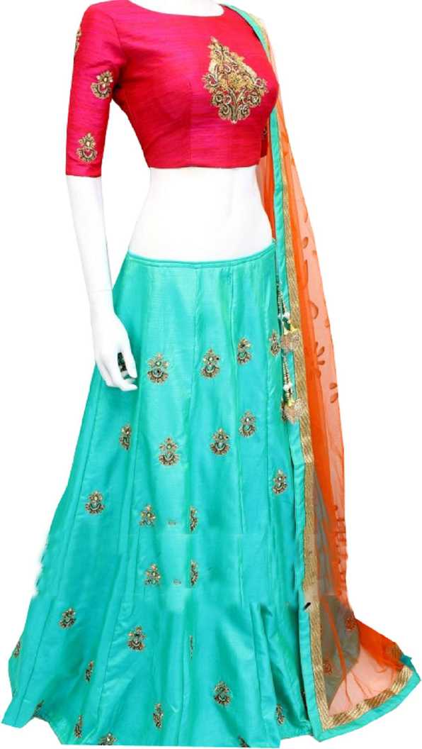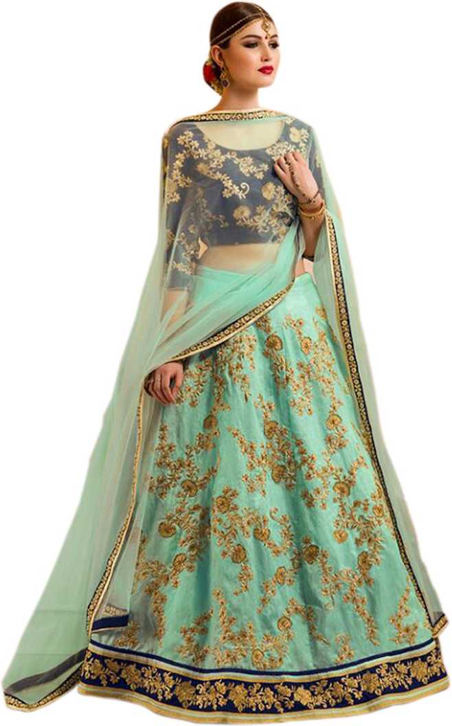 Embroidered Semi Stitched Lehenga, Choli and Dupatta Set (Green)
